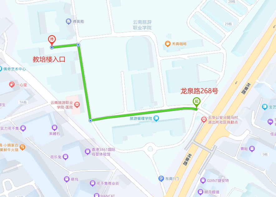 (图)学校东南门至教培楼入口线路图