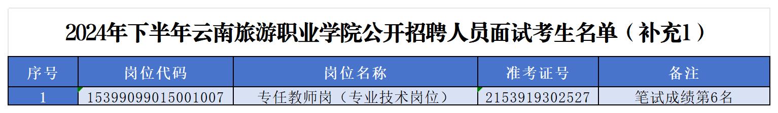 在2024年12月17日发布的《2024年下半年江南官方注册公开招聘人员面试测评公告》中,附件1的《2024年下半年江南官方注册公开招聘人员面试考生名单》中遗漏考生1名,岗位代码15399099015001007的岗位面试人数应为16人,具体补充公告如下。