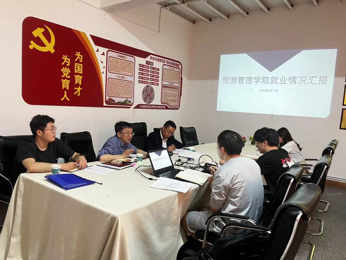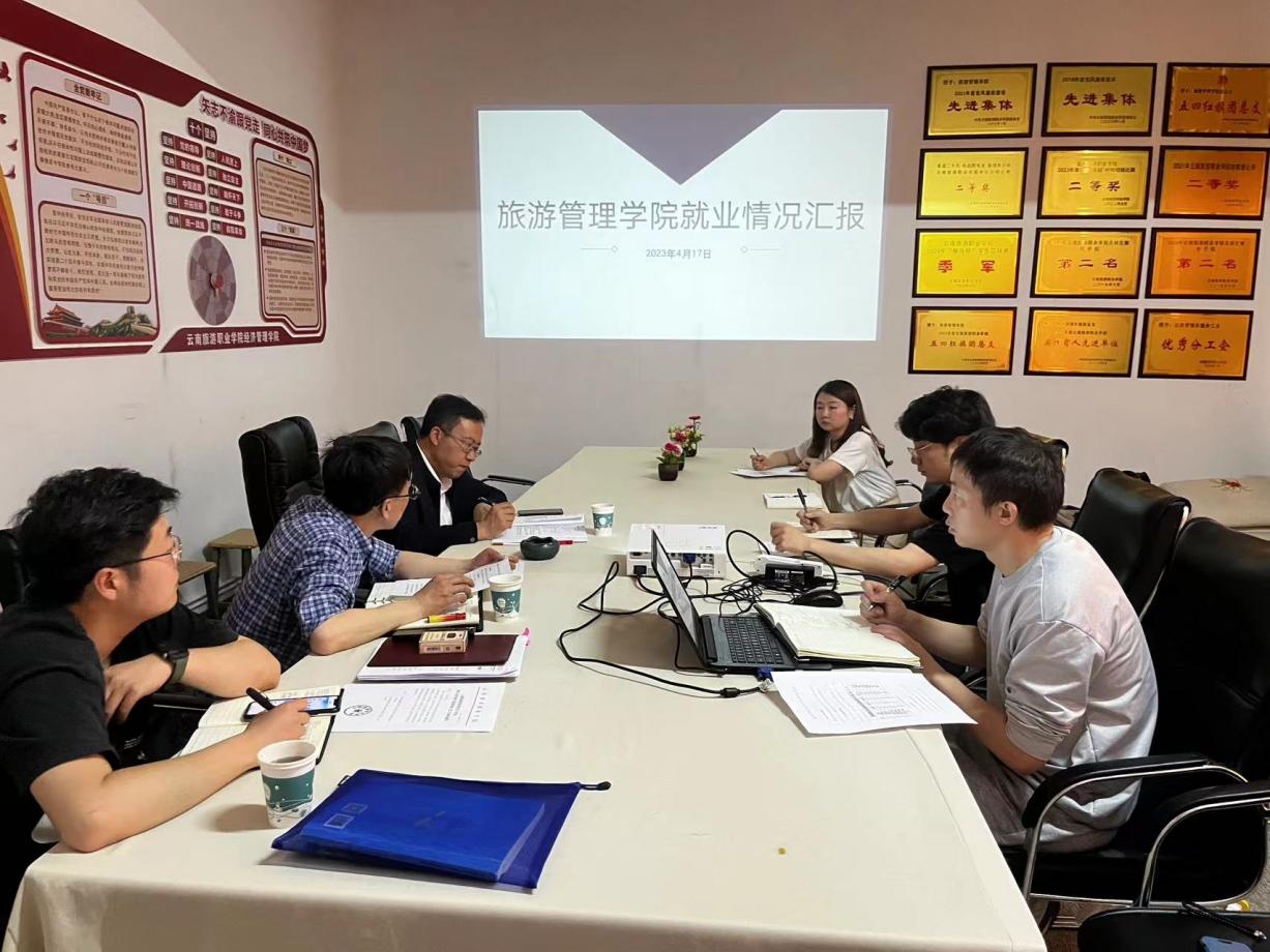 听取汇报后,王翔书记强调,就业是当前学院一项的重中之重的工作,一要认清形势,提高站位。高校毕业生就业工作事关国之大计、党之大计,事关社会安全稳定,党员同志要强化使命担当,把就业工作作为一项重大紧迫的政治任务来抓。就业是学院全过程育人的重要组成部分,要深刻把握高等教育规律和学生成长成才规律,系统推进就业与招生、人才培养联动的长效机制。二要转变观念,深化改革。尽管2023年云南旅游是呈上升趋势,但不可大意,要主动转变观念,树立“全年关注、全员参与、全程指导”的就业工作理念,促进专升本率向就业率的转化,积极探索提升专升本率的路径,积极推动多样化就业渠道;逐步探索家校合作的有效途径和长效机制,改变“慢就业”、“不就业”等消极思想,打好就业工作攻坚战,展现就业工作新面貌。三要压实责任、强化落实。毕业生就业工作要取得扎扎实实成效,关键在于将各项举措落到实处,要深入实施就业工作目标责任制,强化意识,构建责任明晰、措施有效、保障有力的落实机制,加强考核监督,一级抓一级,层层抓落实;不断改进工作方式方法,用心用情推动就业工作。