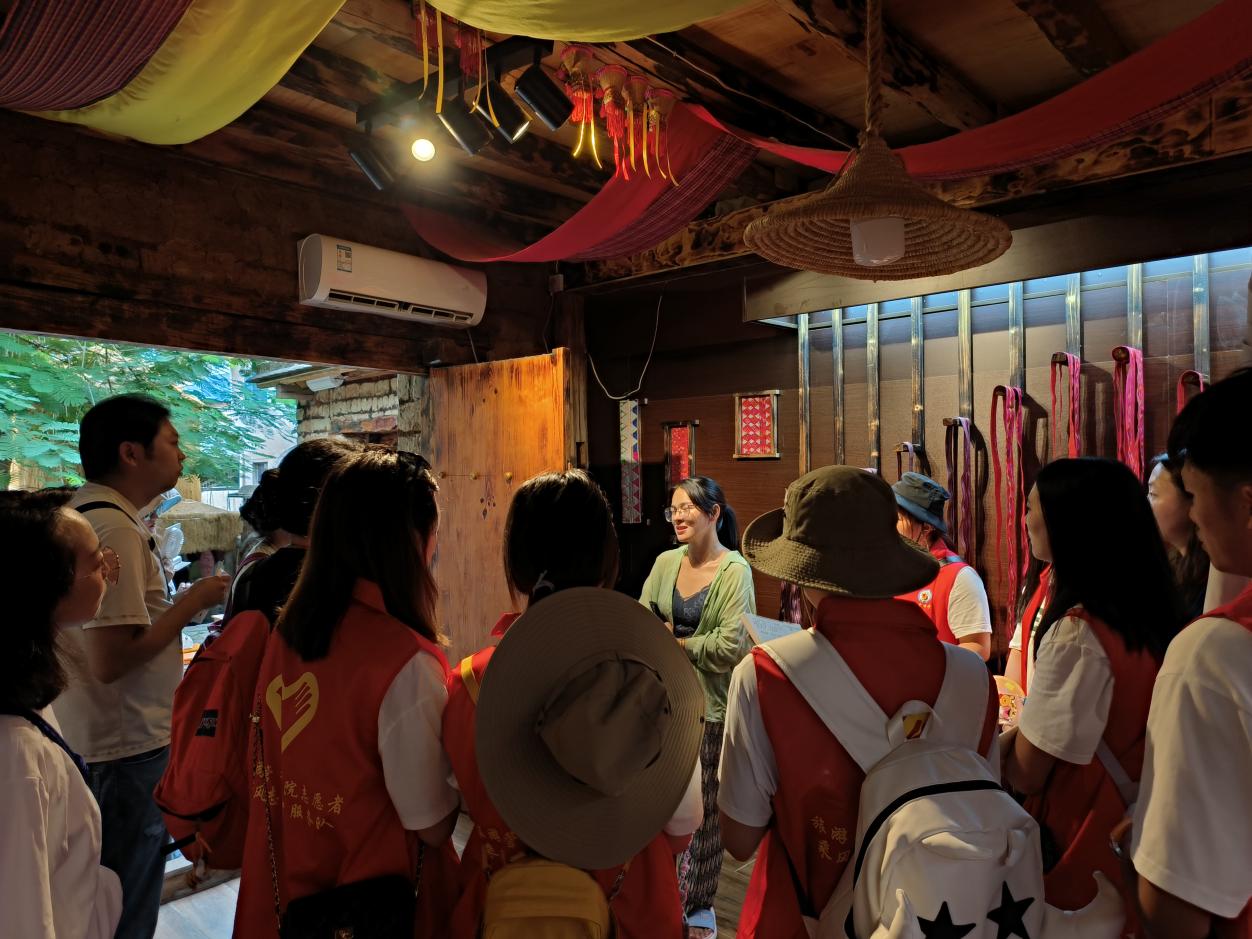 图为刺绣非遗传承人刀向梅为实践队员进行非遗传承宣讲