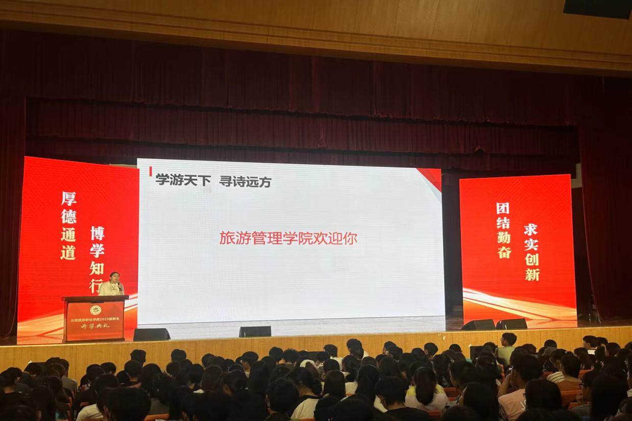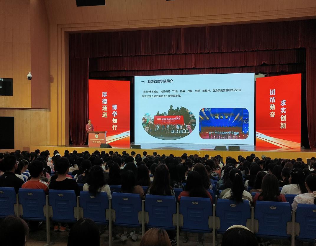 9月22日上午,旅游管理学院在高新校区大礼堂举行2023级新生入学教育。院长袁浩镛、副院长李凡、副书记聂晓茜及教研室主任、全体辅导员、班主任和2023级的全体新生参加本次入学教育。会议由学工组长张洪洪主持。