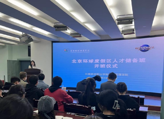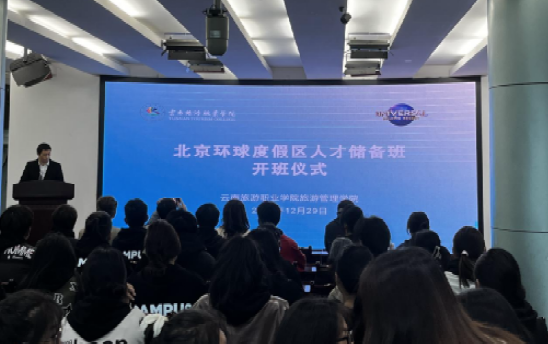为进一步深化校企合作,推进产教融合育人模式,2023年12月29日上午,旅游管理学院和北京环球度假区人才储备班正式开班。学院党委委员副院长黄绍勇出席并讲话,开班仪式由旅游管理学院院长袁浩镛主持。