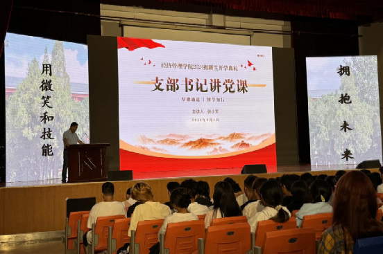 近日,经济管理学院2024级新生开学典礼暨院长第一课在高新校区报告厅隆重举行。学院领导班子成员、各专业负责人、辅导员、新生班班主任以及2024级本科新生参加了此次典礼。典礼由学院团支部书记杨秋霞主持。