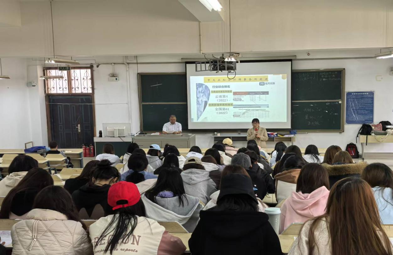 近日,一场精彩纷呈的“财税行业职业规划及行业认知”讲座在我校高新校区成功举办。讲座吸引经济管理学院2024级财务会计专业群近300多名新生前来聆听,现场座无虚席。讲座特邀全国百强事务所----云南中天正和会计师事务所行业资深导师李映碧、陈勇担任主讲人。