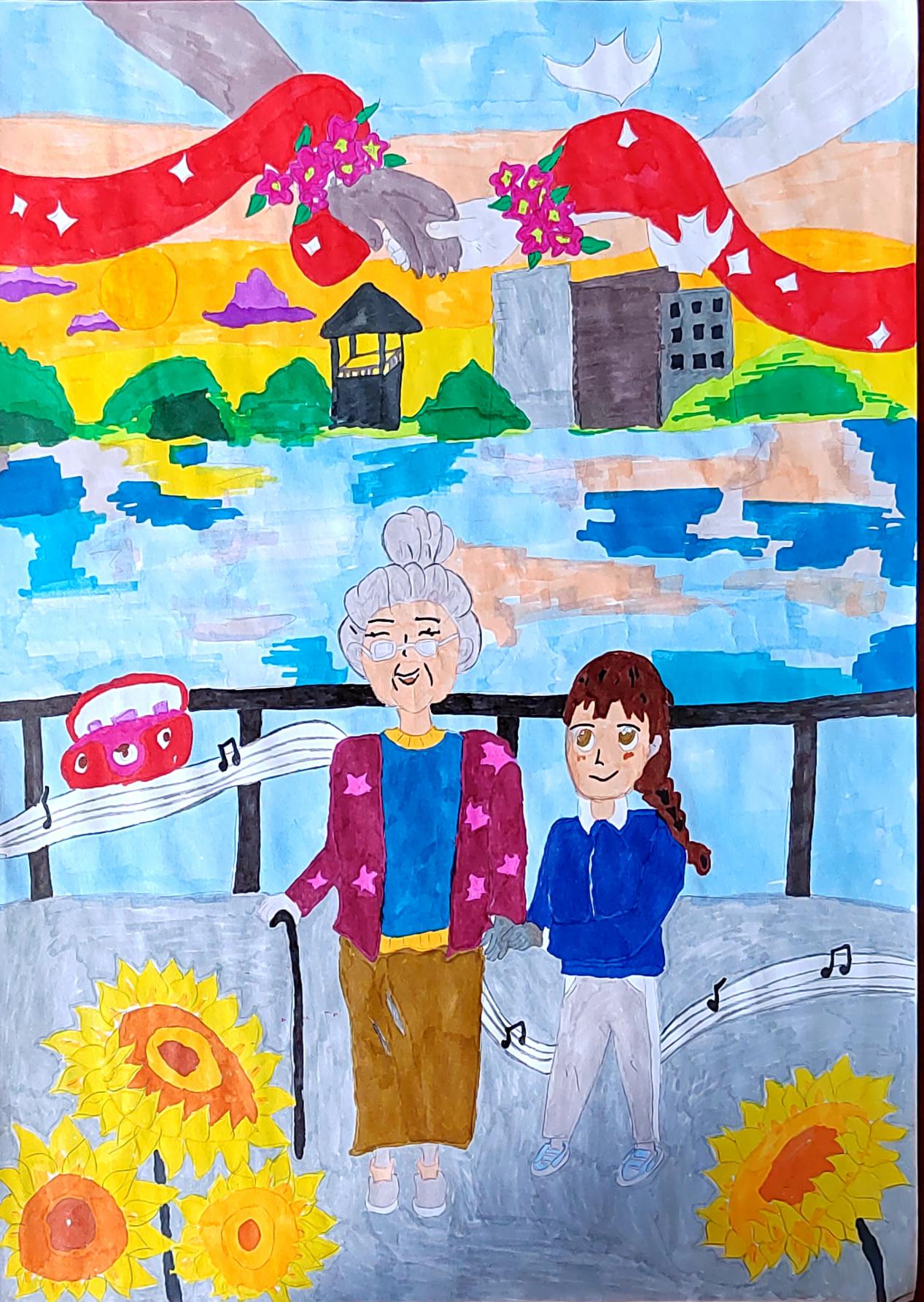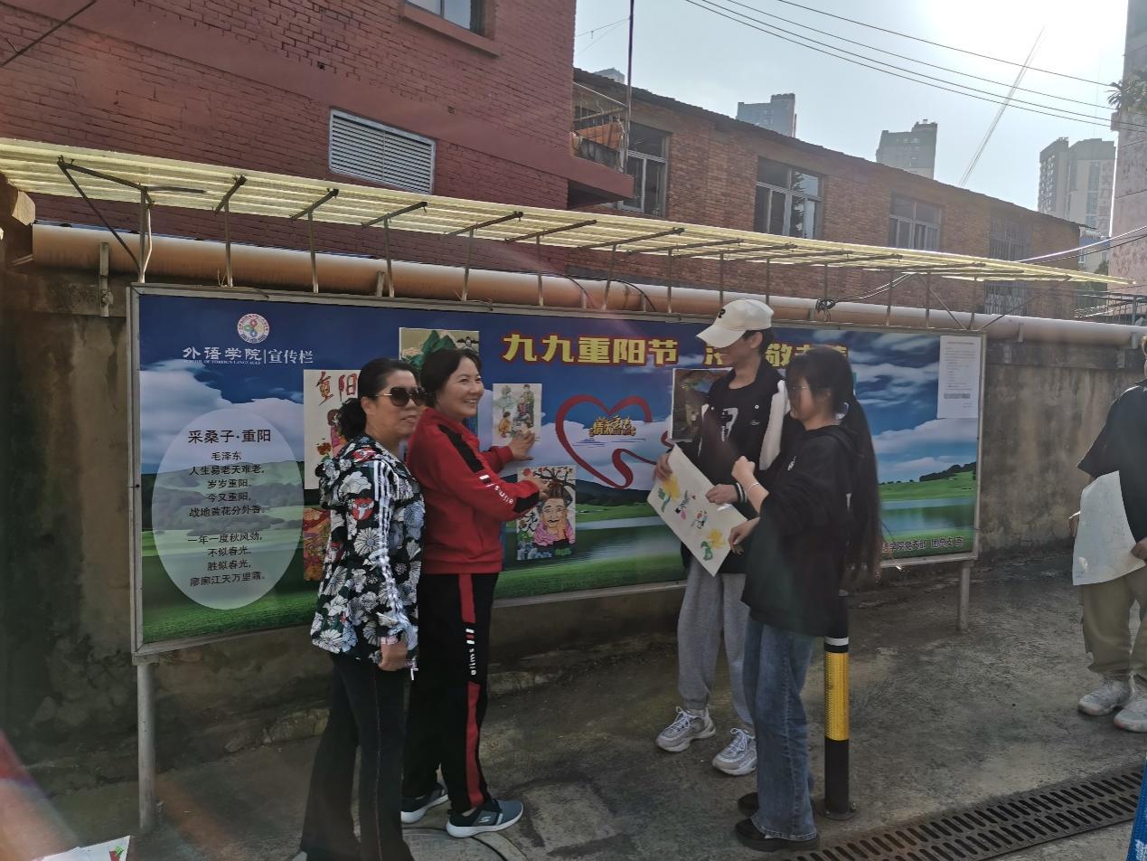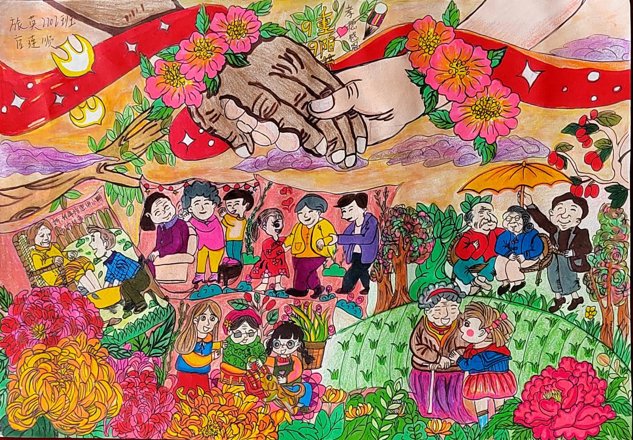 金秋送爽,丹桂飘香,重阳又至,问候送上。今年10月是全国第14个全国“敬老月”,10月23日(重阳节)是全国第11个法定“老年节”。在这秋风送爽,十里飘香的季节,我们迎来了重阳佳节。今年也是伟大领袖毛主席诞辰130周年。毛泽东同志是伟大的马克思主义者,伟大的无产阶级革命家、战略家、理论家,是领导中国人民彻底改变自己命运和国家面貌的一代伟人。为深入贯彻落实党的二十大精神和习近平总书记关于老龄工作重要指示精神,弘扬中华民族孝老爱亲传统美德,营造养老孝老敬老社会氛围,不断增强广大老年人的获得感、幸福感、安全感,外语学院结合2023年开展青少年“中华魂”(毛泽东伟大精神品格)主题活动,充分发挥“五老”优势,组织开展了“弘扬中华魂感党恩敬老爱老传承未来”主题绘画活动,听“五老”讲历史,和“五老”一起布置宣传栏,以笔为心,以画为言,画出对毛泽东等老一辈无产阶级革命家的无限敬意,写出对老一辈人的感恩和敬意,送出对老教师们深切的祝福。引导青年学生学习毛泽东伟大精神品格,学习老一辈无产阶级革命家为全民族幸福生活奋斗终身的高尚品质和革命精神,弘扬中华民族尊老、爱老、助老、敬老的传统美德。