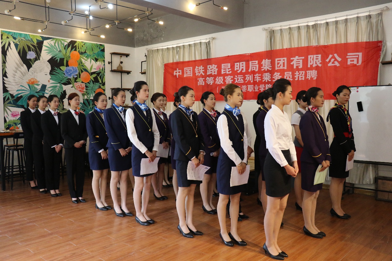 为进一步开拓就业渠道和就业岗位,全面深化校企合作,全力促进我院学生实现更加充分更高质量就业,4月6日,中国铁路昆明局集团有限公司到我院进行“高等级客运列车乘务员”专场招聘,同时开展访企拓岗促就业专项行动。