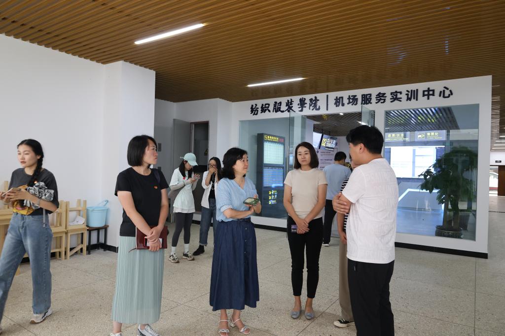 在纺织服装学院钟南书记、李波院长、林燕副书记的带领下,我院全体党员实地走访了服装设计与工艺、服装与服饰设计、人物形象设计、机场运营服务等专业的实训室,双方专业教师以教研室为单位,针对专业教学中的心得、思路、困惑等方面进行了深入交流。