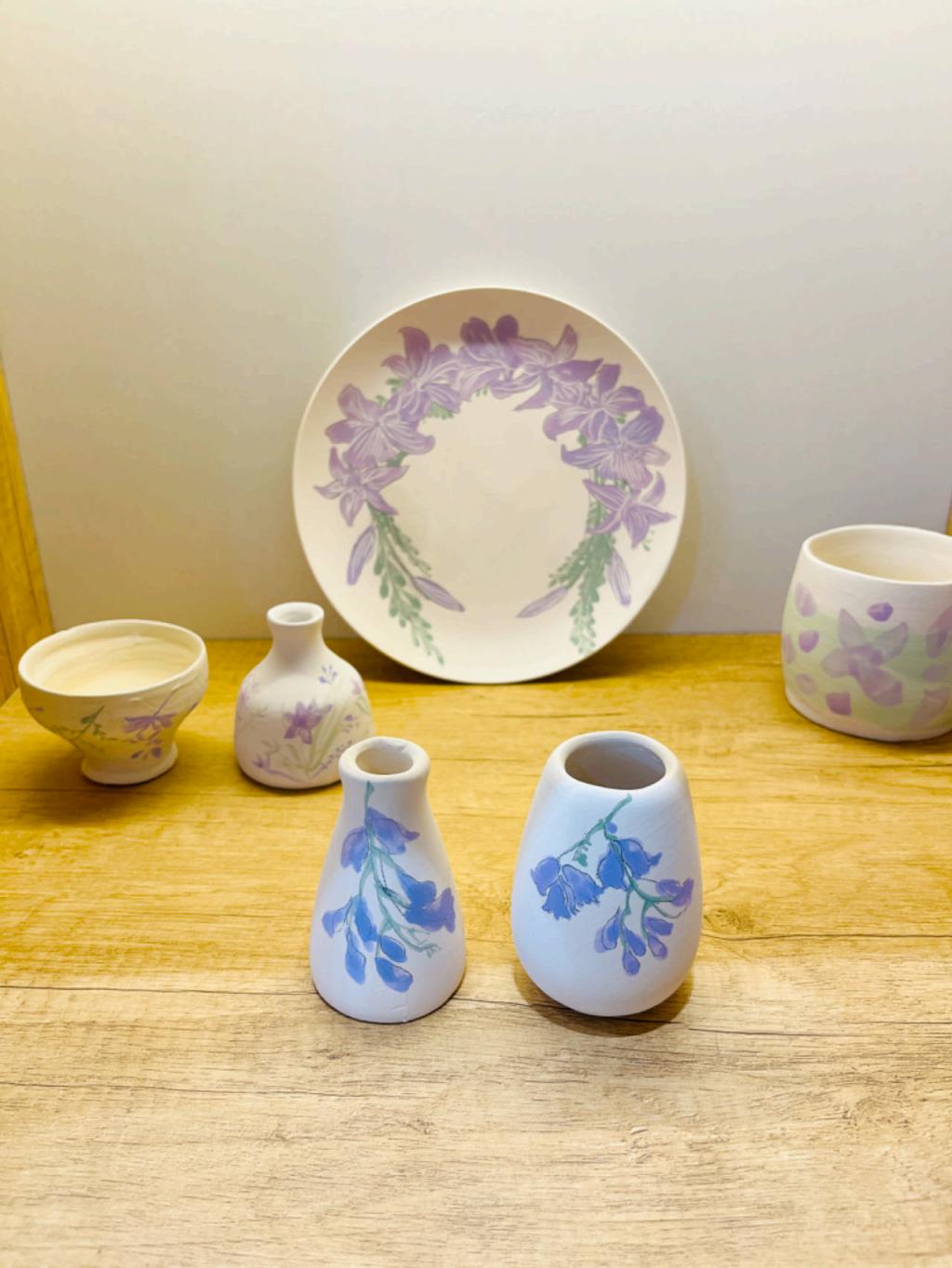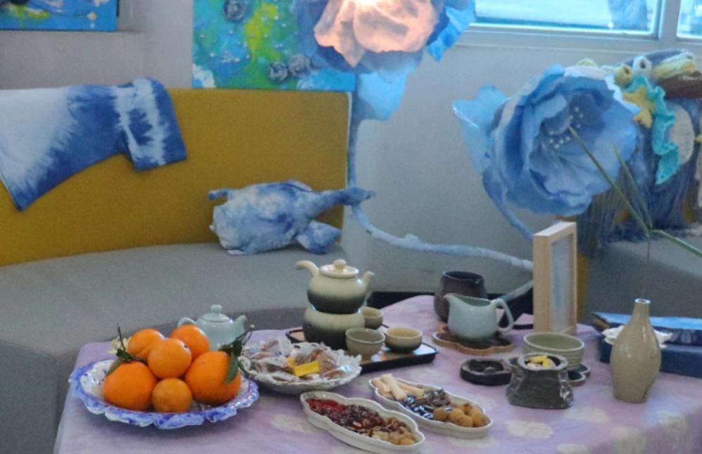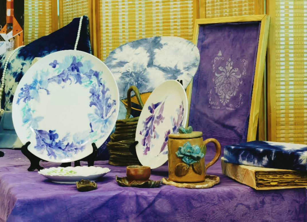 (大师工作室设计的蓝花楹陶瓷文创产品代表学院参加教北社区主办的昆明蓝花楹文化艺术节。)