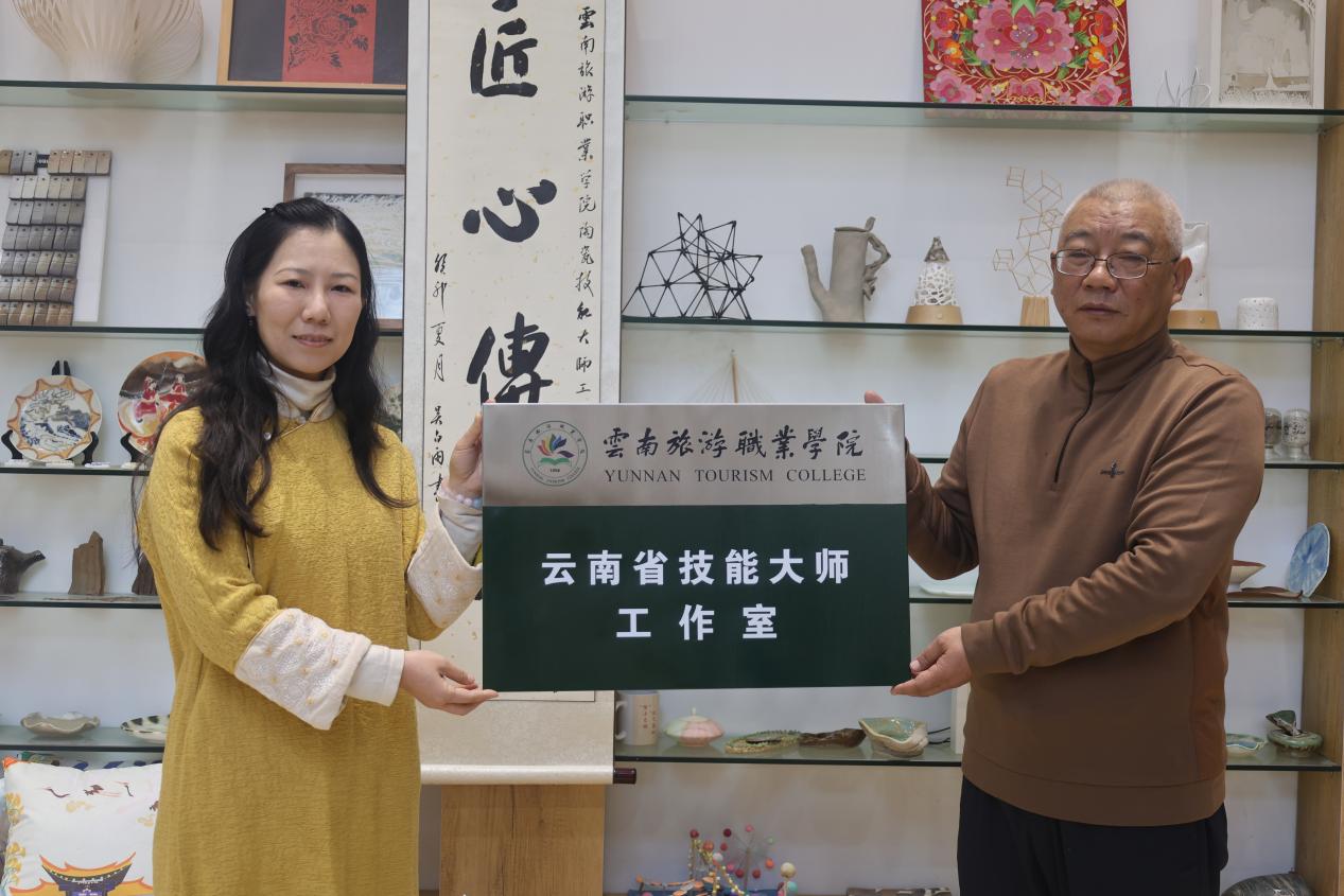 学校副院长黄绍勇为大师工作室进行了“云南省技能大师工作室”授牌。未来,在礼敬、保护文化经典的基础上,大师工作室将继续擦亮文化品牌、激活中华优秀传统文化的生命力、挖掘中华优秀传统文化的精神价值,在讲好中华故事、 传播青年声音、传承中华优秀传统文化的过程中,扩大社会影响 力,让更多的师生接受中华优秀传统文化的熏陶,感受中华优秀传统文化的魅力,成为传播中华优秀传统文化的使者。