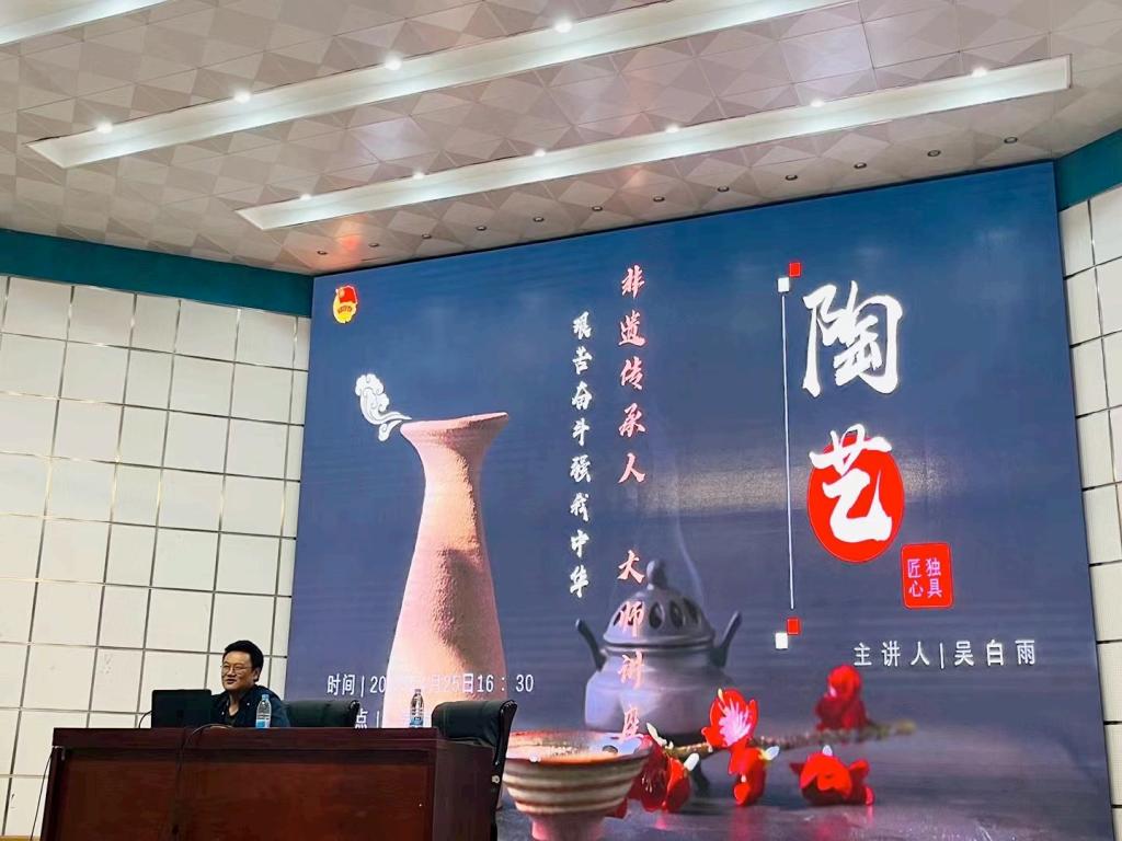 (大师工作室定期举办非遗大师进校园系列讲座,将中华优秀传统文化在非遗中的具体表现传授给师生。)