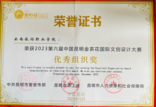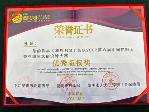 近日,从2023第六届中国昆明金茶花国际文创设计大赛(下称金茶花大赛)传来喜讯,文化艺术学院邓洁煌老师带领工艺美术品设计专业学生首次参赛,多项文创设计作品获得市委宣传部、市总工会、市人社局颁发的优秀版权奖、创新设计奖、优秀组织奖、优秀导师奖、入围奖等多个奖项。