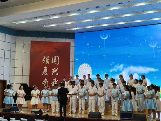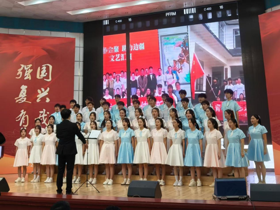 演唱校歌《给明天一个美好的期待》。