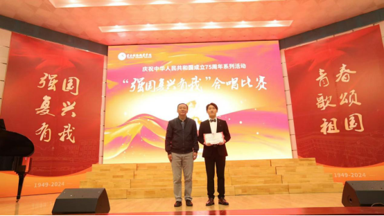 为庆祝中华人民共和国成立75周年,弘扬爱国主义精神,激发广大师生的爱国情怀与民族自豪感,奋力谱写学校“高质量发展”新篇章凝心聚力,近日,我校在报告厅隆重举行“强国复兴有我”合唱比赛。文化艺术学院在本次比赛中荣获特等奖。