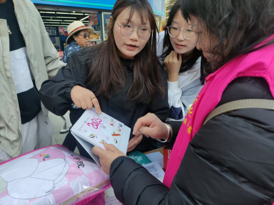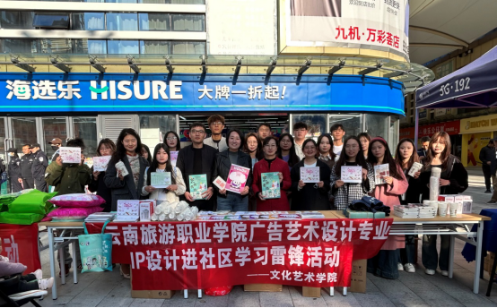 活动中,我院广告艺术设计专业的同学们以“艺韵云旅”系列IP周边产品为载体,将雷锋精神融入创意设计,推出保温杯、抱枕被、雨伞、台历等多种文创产品。这些设计既贴近生活,又富有艺术美感,吸引了众多社区居民驻足参与。