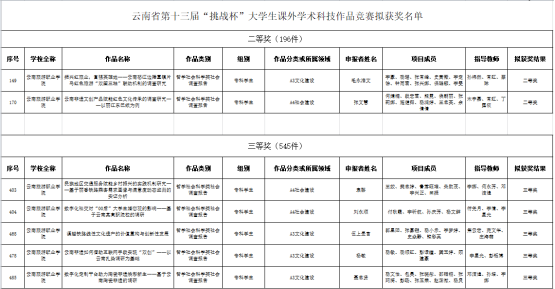 近日,由共青团云南省委、中共云南省委教育工委、云南省社会科学院、中国科学院昆明分院、云南省学生联合会、中国移动通信集团云南有限公司联合会主办的云南省第十三届“挑战杯”大学生课外学术科技作品竞赛圆满落幕,我院报送的参赛作品共获得二等奖2项、三等奖5项。