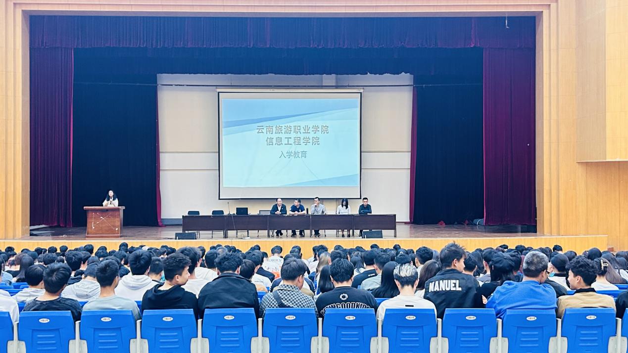 为深入学习贯彻党的二十大精神,切实做好2023级新生入学教育,帮助同学们适应大学生活,树立正确的世界观、人生观和价值观,9月18日上午9时,信息工程学院隆重举行新生入学教育大会,本次大会在高新实训基地报告厅举行。
