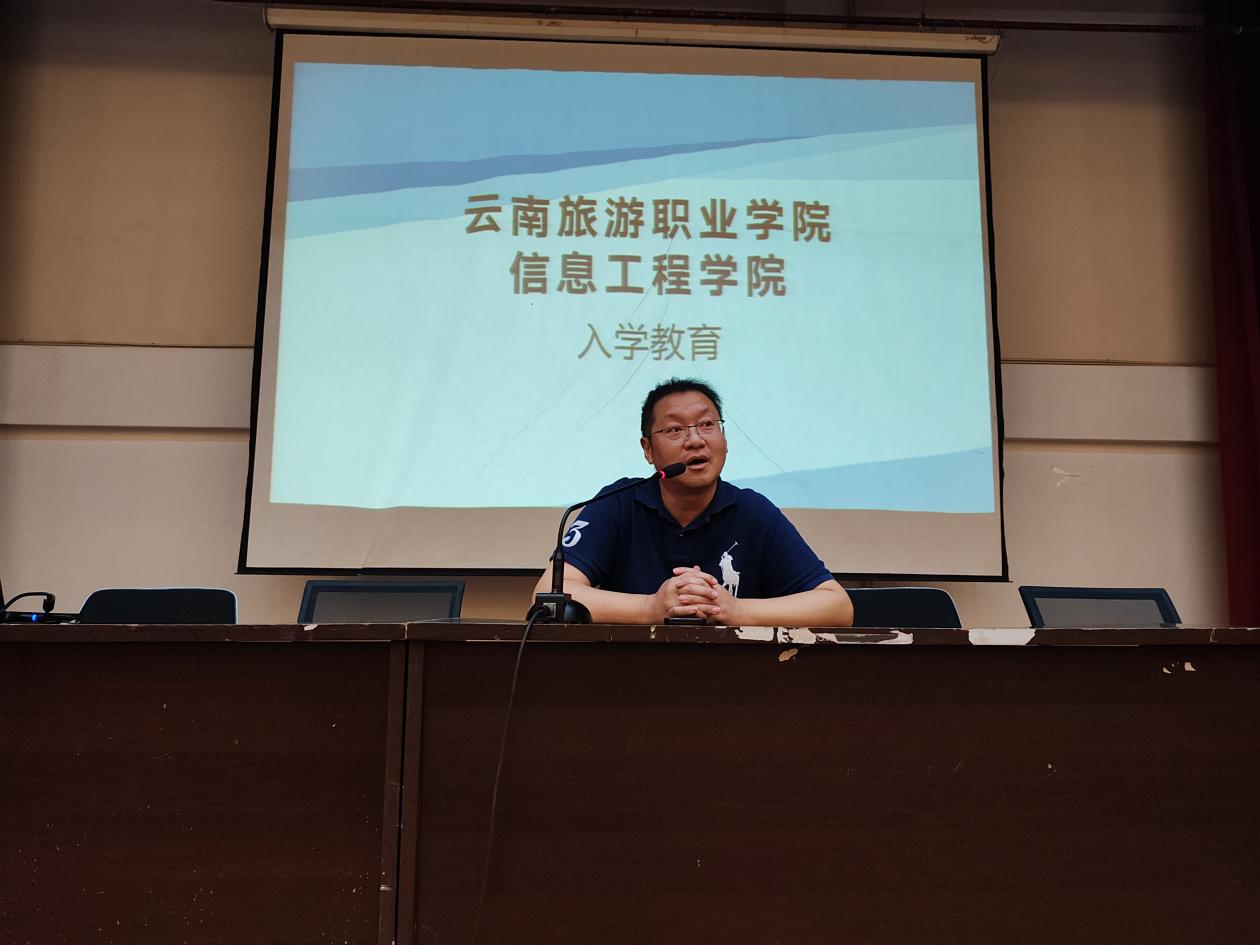 党支部书记丁应逵首先对同学们来到信息工程学院学习表示热烈的欢迎和祝贺。并对学院发展历史、学院所设专业进行简要介绍。同时,对全体新生提出期望:一是要树立远大志向,立志成长成才,以实现中华民族伟大复兴为己任,成为合格的中国特色社会主义事业的建设者和接班人,争当优秀大学生;二是要学习职业技能,掌握科学方法,提高学习效率,做好职业生涯规划。