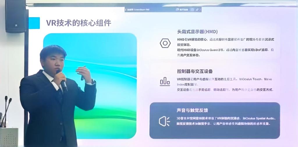 伴随着动人的旋律,比赛正式拉开了帷幕,参赛选手们纷纷登台,从无线网络优化测试、软件架构设计模式,虚拟现实VR在交互设计中的创新应用等多个角度展开演讲。他们结合课堂所学知识和当前科技发展的前沿趋势,以独特的视角分享了自己对未来科技的独到见解和美好愿景。