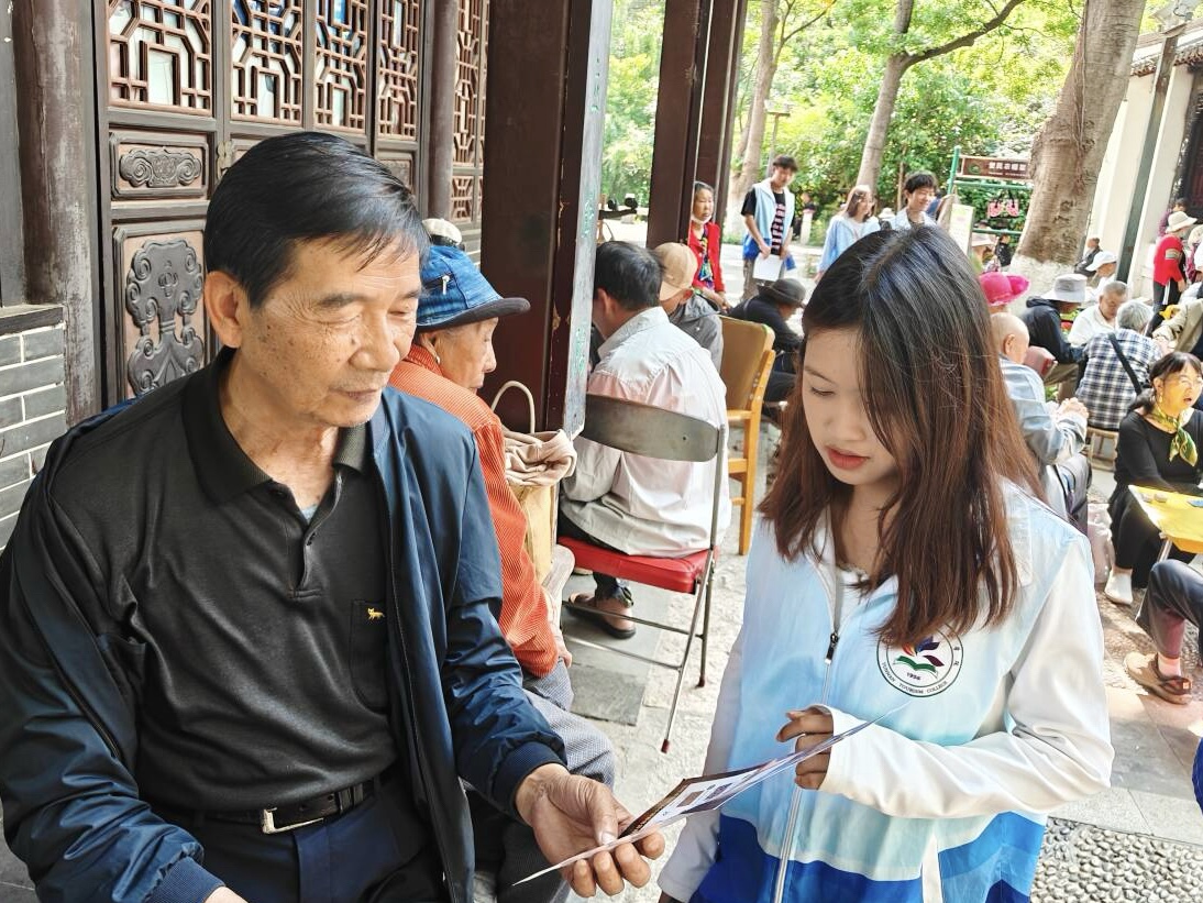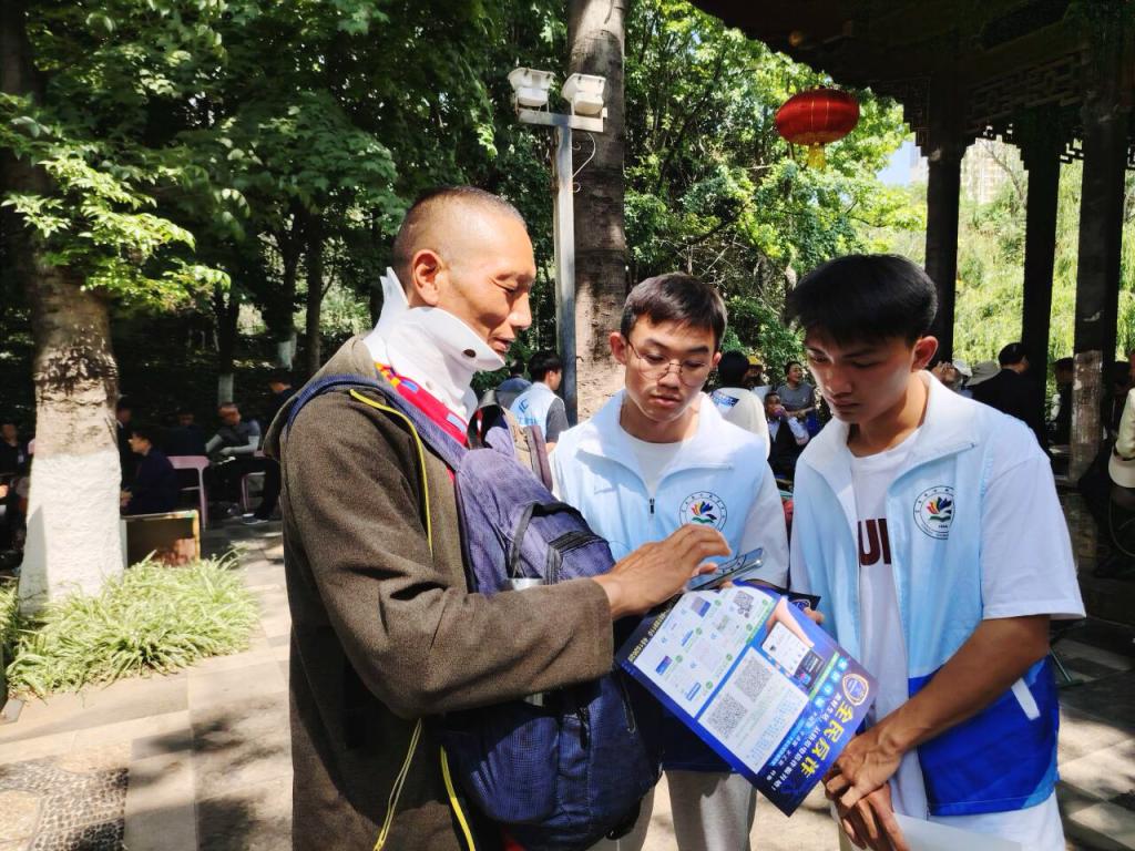 近日,我校信息工程学院组织师生志愿者团队走进莲华社区莲花池公园,开展主题为“银发守护志愿者进社区:全民反诈宣传,筑牢养老钱安全防线”的公益活动。