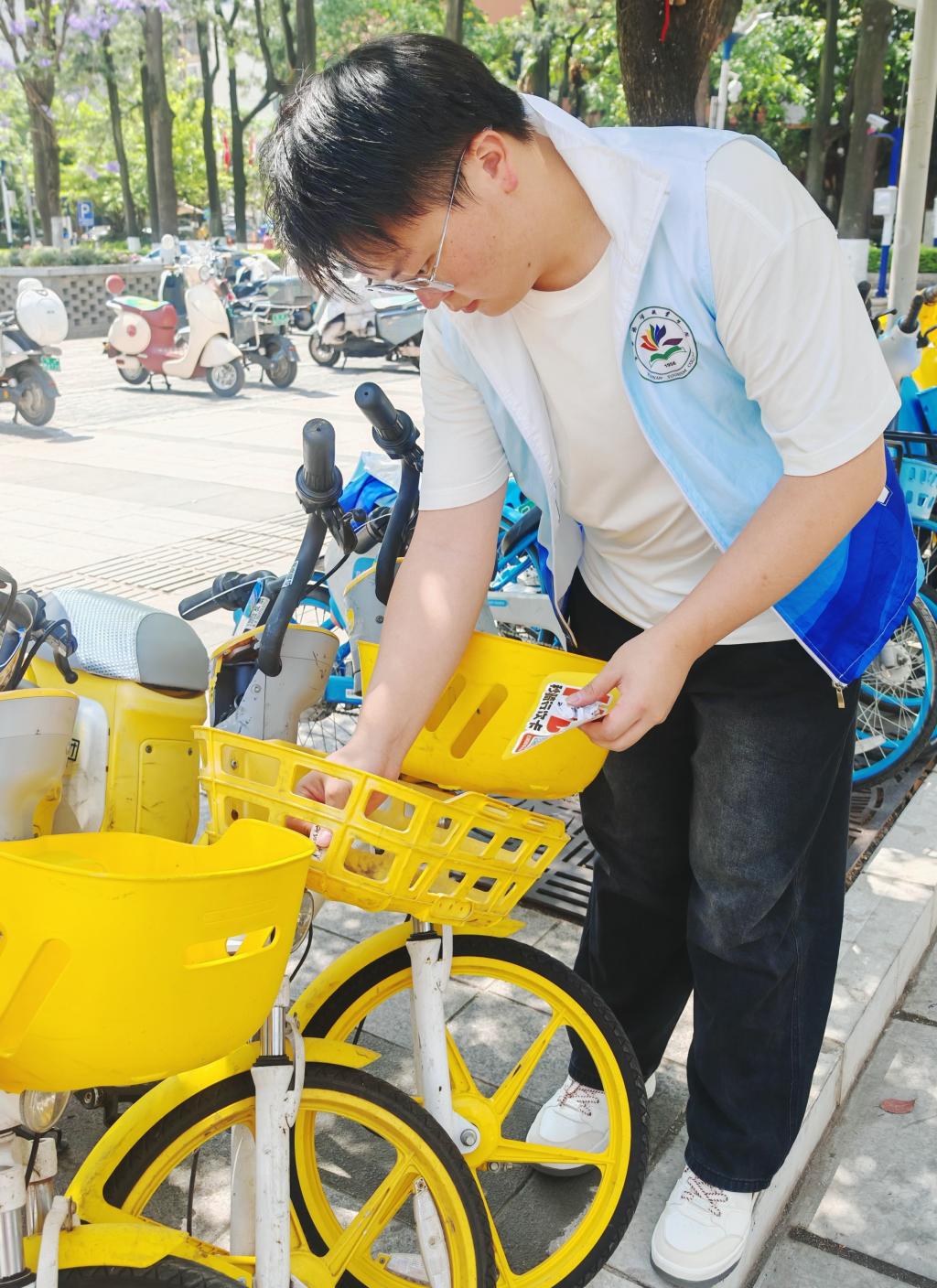 近日,我校信息工程学院20名学生志愿者走进翠湖周边区域,开展了一场整治共享单车公益活动,让乱停放的共享单车“归位”,给“牛皮癣”小广告“洗脸”,用实际行动擦亮城市文明“名片”。