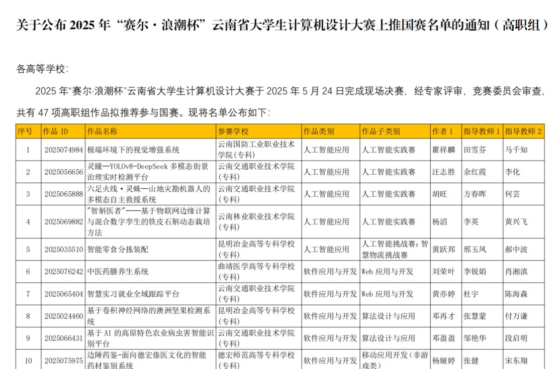近日,2025年“赛尔·浪潮杯”云南省大学生计算机设计大赛暨第18届中国大学生计算机设计大赛云南赛区决赛圆满落幕。本次大赛由云南省大学生计算机设计大赛组委会主办,云南省高等学校计算机教学研究会、云南林业职业技术学院承办,赛尔网络云南分公司、浪潮集团云南分公司联合赞助。