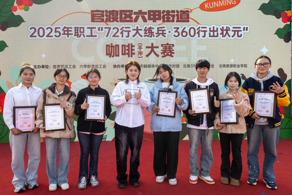 为提升咖啡从业人员的技能水平,推动本地咖啡文化的发展,1月3日,由官渡区六甲街道主办的2025年职工“72行大练兵·360行出状元”咖啡师职业技能竞赛在福保半岛圆满落幕。我校烹饪学院的学子们在此次竞赛中表现出色,斩获多项奖项。