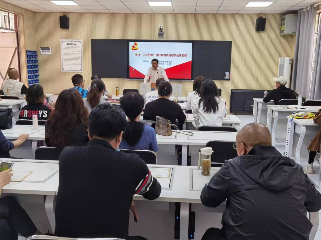 近日,学校党委书记王翔到马克思主义学院上了一堂题为《坚持“三个把握”讲好新时代高职院校思政课》专题党课,马克思主义学院全体教师参加此次党课活动。