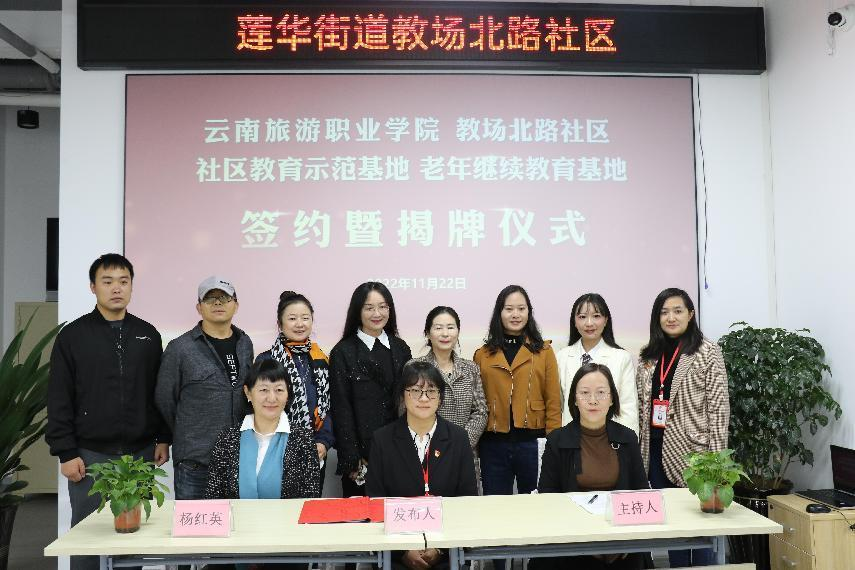 11月22日,江南官方注册与莲华街道教场北路社区联合举行社区教育示范基地和老年继续教育基地签约及揭牌仪式。