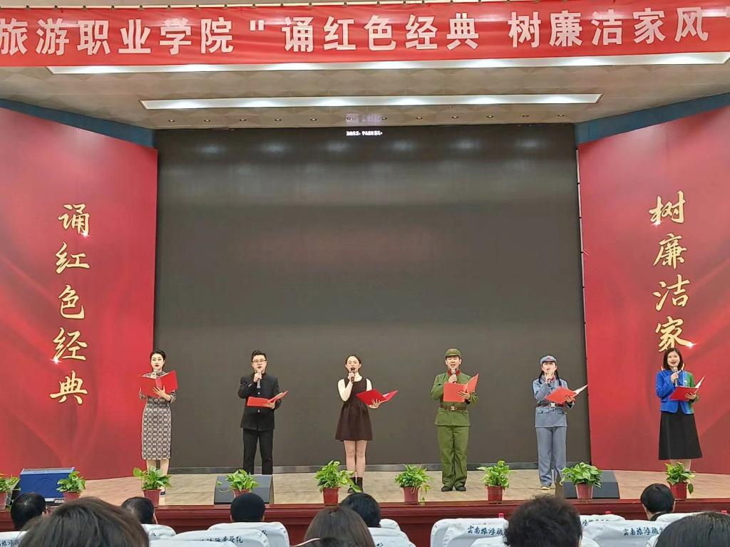 酒店管理学院2022年度第9次教职工政治理论学习来到了学校报告厅,以集体观摩“诵红色经典 树廉洁家风”教职工朗诵比赛形式进行清廉家风教育学习。