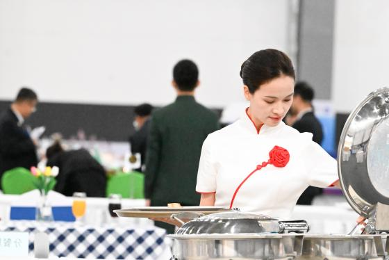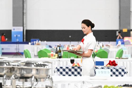 职工组选手张艳分餐服务现场