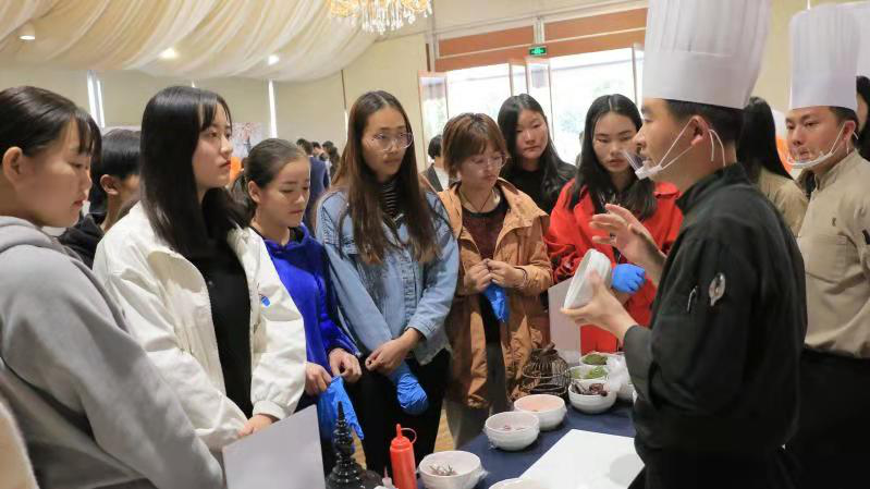 会面酒店人——同学们兴奋地与酒店职业形象展示的美女帅哥一起拍照合影;