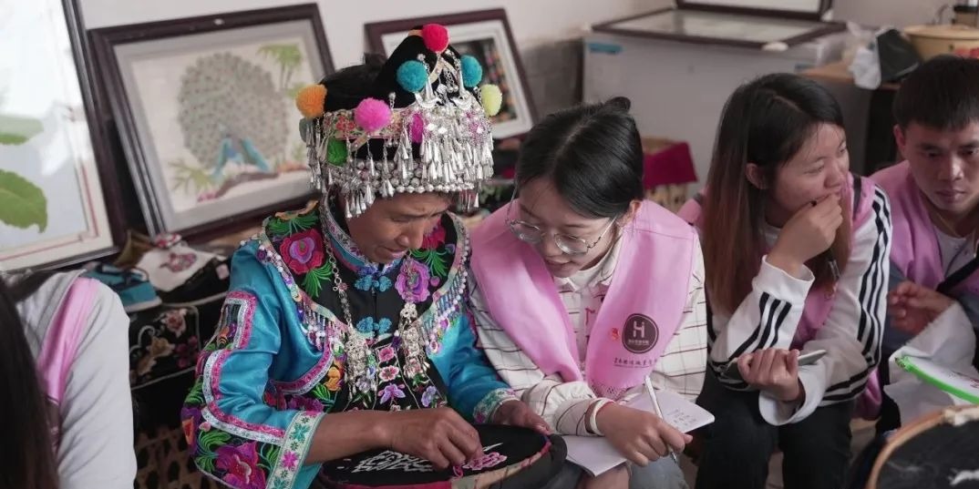 实践团在景东县安定镇青云村拜访当地非遗传承人,近距离感受了非遗刺绣纹样的手提包、毛边鞋和彝族服饰等。通过对《跳菜》、《大帮腔》和《羊皮舞》等彝族非遗文化,了解了丰富的民族文化内涵,促进了民族团结的情谊。彝族特色鲜明的民族产品和淳朴的民族风情,让大家在交往交流交融中,共乐共享,以歌会友、以舞结缘,现场热闹非凡。实践团通过对青云村的非遗项目的了解,认识到非物质文化遗产保护的重要性,增强了大家对少数民族文化的保护意识。
