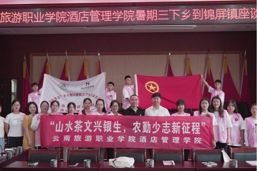为深入学习党的二十大精神,进一步贯彻落实习近平总书记关于青年工作的重要思想,引导和帮助广大青年学生在实践中开阔视野,经受锻炼,增长才干,以我所学,服务社会,深化实践育人成果。2023年7月7日,酒店管理学院党支部、团总支在学校党委及团委支持下,以“三下乡”社会实践为抓手,结合专业特色,服务乡村建设与发展,赴普洱景东彝族自治县开展了为期7天,以“山水茶文兴银生,农勤少志新征程”为主题的“三下乡”社会实践活动。