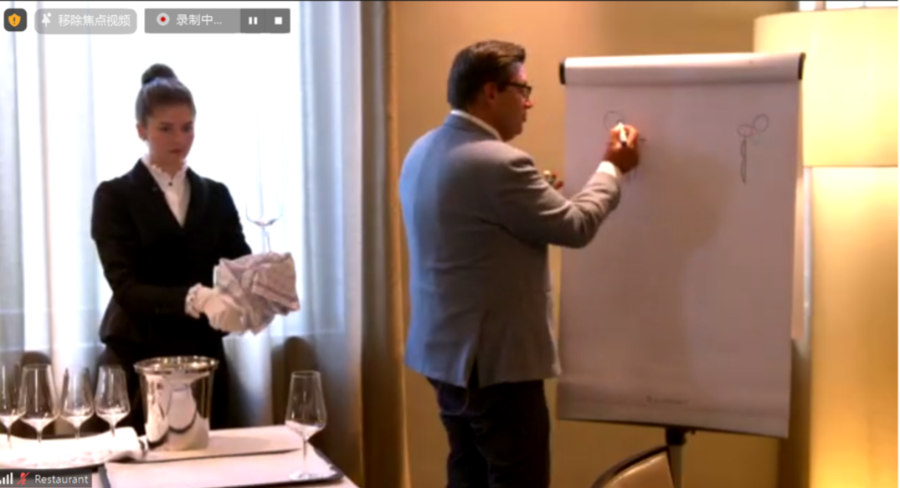 在Martina完成了演示之后,Martin为老师重点讲解了世赛餐厅服务中服务种类、服务流程、服务方法和评分标准进行了解析。