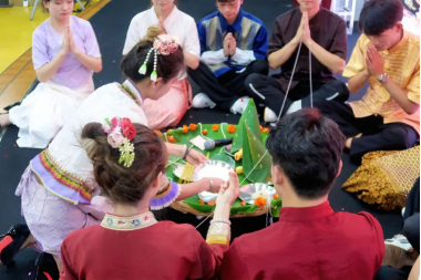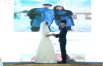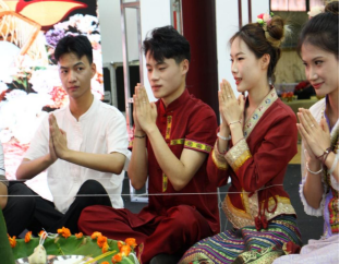 在“花腰织梦・彝韵婚典(彝族)” 的盛宴中,火红的裙摆翻涌如炽烈云霞,银饰叮当奏响山野的欢歌。彝族姑娘们身着缀满星辰的花腰服饰,踏着月琴与三弦交织的旋律,每一个环节都镌刻着彝族对幸福的炽热追求,让独特的婚俗文化魅力在烟火人间绽放。步入 “贝叶情书・囍宴傣林(傣族)” 的秘境,贝叶经卷里流淌着千年情话,象脚鼓的鼓点在热带雨林中激荡回响。新人跪坐于铺着芭蕉叶的竹席,长者以洁白棉线轻系其腕,同时念诵祈福经文。棉线串联新人灵魂,寄寓幸福、吉祥与平安长伴。浓郁的傣族婚典风情便在椰影婆娑间徐徐铺展,诉说着水一样温柔绵长的浪漫。