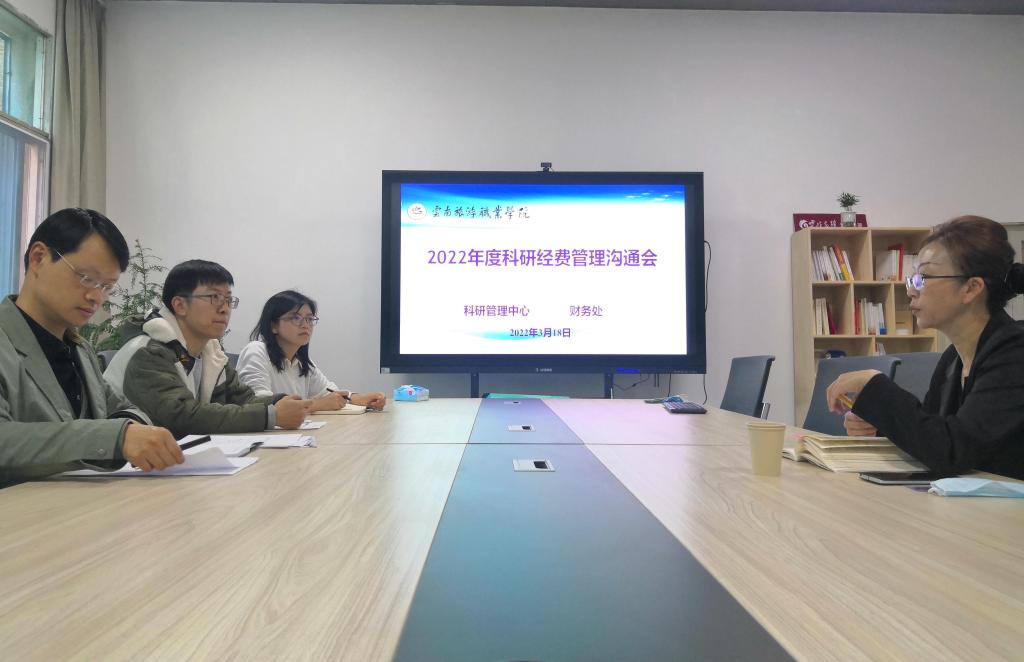 为规范学院科研项目资金管理,提高资金使用效益,保障各项科研工作顺利推进,促进我院在人才培养、教学科研队伍建设、社会服务等方面积累优秀成果和实践经验,科研管理中心与财务处于2022年3月18日下午在综合楼108会议室就科研经费管理进行了沟通、协调与衔接。
