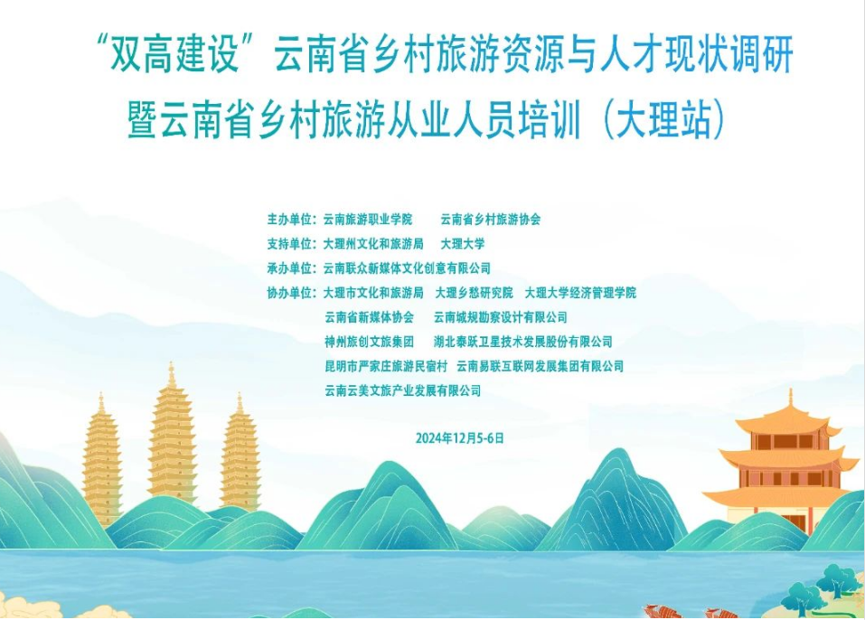 12月5日至12月6日,由我校联合云南省乡村旅游协会主办的云南省乡村旅游资源与人才现状调研暨云南省乡村旅游从业人员培训(大理站)在大理大学成功举办,本次活动是继普洱站、临沧站、昆明站后的第四站。此次活动旨在加速驱动乡村旅游赋能乡村振兴战略的多重价值实践,找准资源优化配置和人才结构调整的重点和方向,为乡村旅游产业升级转型,人才综合素质、能力水平提升,提供系统专业指导和关键要素保障,深入推动云南省乡村旅游可持续高质量发展。