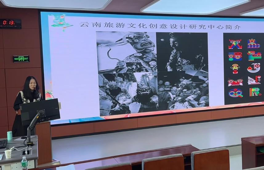 我校邓洁煌副教授从文化创意设计的角度,围绕云南特有的文化元素与民族服饰、传统面具、图案等,讲授如何通过创新设计吸引更多的游客和文化爱好者,并将人类学、艺术设计、旅游学等领域的知识结合起来,以实现对云南旅游文化资源的创新性转化和可持续发展。