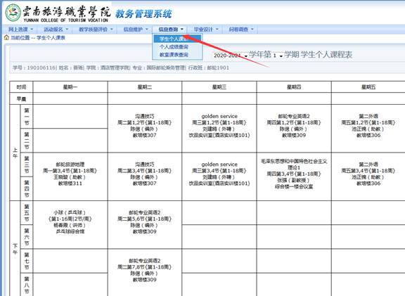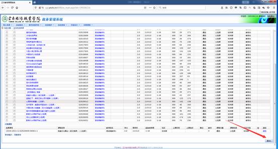 7.选择完成后,点击最右下面提交完成选课。之后就可以在最上方菜单信息查询—学生个人课表中,查询本人课表。