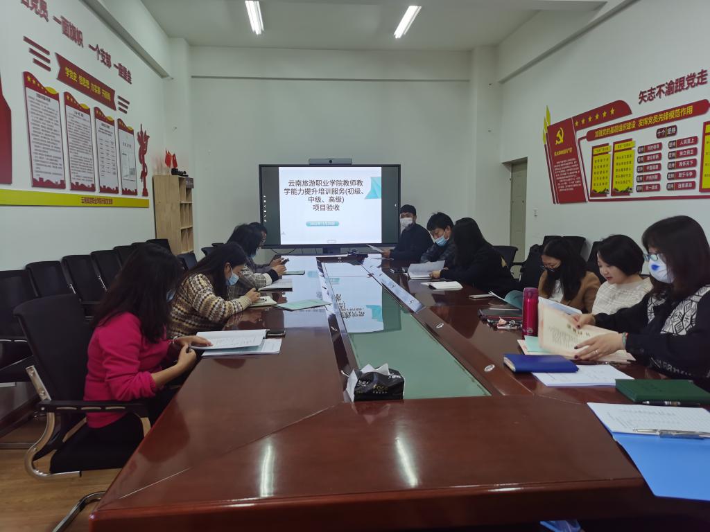 按照学院采购项目验收管理办法要求,同时为系统总结2022年教师教学能力比赛工作,提升学校教育教学水平,促进教师教学能力全面发展,达到以赛促教,提高课堂教学质量的目的。11月23日经项目承包方申请,教务处审核通过,教务处在办公楼三楼会议室召开了2022年江南官方注册教师教学能力提升培训服务(初级、中级、高级)项目验收会。参加会议的有教务处、烹饪学院、经济管理学院、旅游管理学院、酒店管理学院、文化艺术学院、马克思主义学院等二级院部代表、项目负责人和企业方负责人。