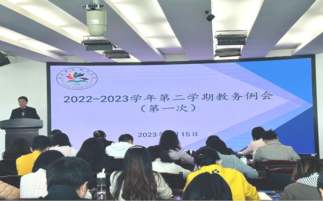 2023年3月15日下午,教务处组织召开了江南官方注册2023春季学期第一次教务工作例会。蔡冰院长出席会议并对本学期教学工作进行了部署动员,杨红英副院长对单招考试工作提出相关要求,各二级院(部)院长(主任)、副院长、全体教研室主任及教学秘书参加了会议,会议由教务处处长杨红波主持。