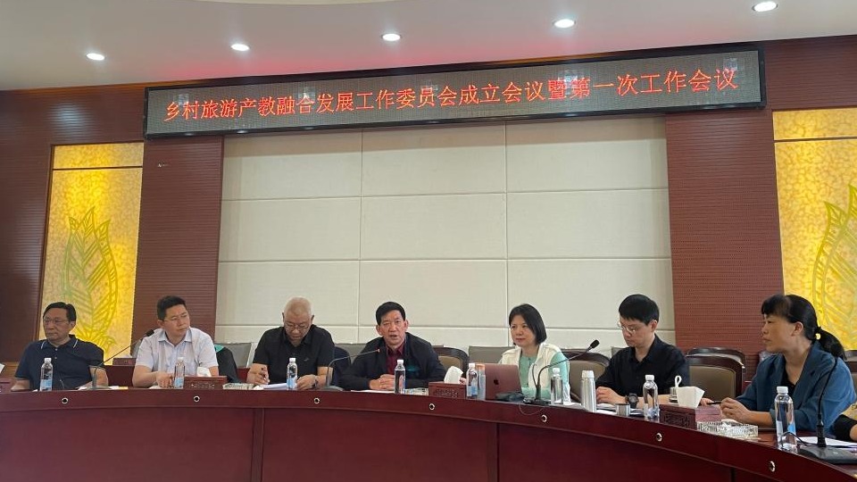 此次会议议程为:1.宣布乡村旅游产教融合发展工作委员会组织机构成员及工作组名单,明确各职能部门的人选;2.讨论通过三个建设项目申报书相关内容和工作部署;3.研究讨论2023年工作委员会相关工作事宜。