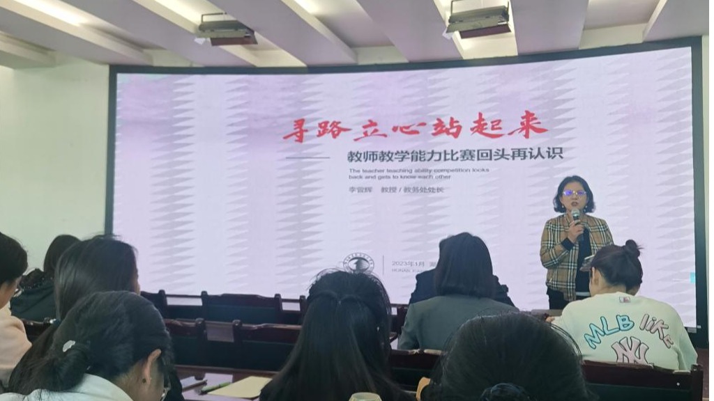 本次培训特邀湖南城建职业技术学院教务处处长李曾辉教授,讲授主题为“寻路立新站起来—教师教学能力比赛回头再认识”。李教授从教育理念和教学底层逻辑谈起,从2022年国赛一等奖参赛选手的角度,分享了自己在竞赛全过程中的实践与经验,在教学项目重构、作品融入典型工作案例、教材选用等方面提出具体措施和建议。此次分享对我校教师的教学能力提升具有很大的实践指导意义。