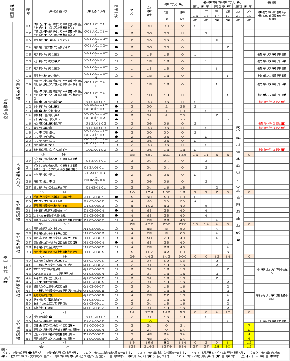 表2 计算机网络专业课程设置基本情况