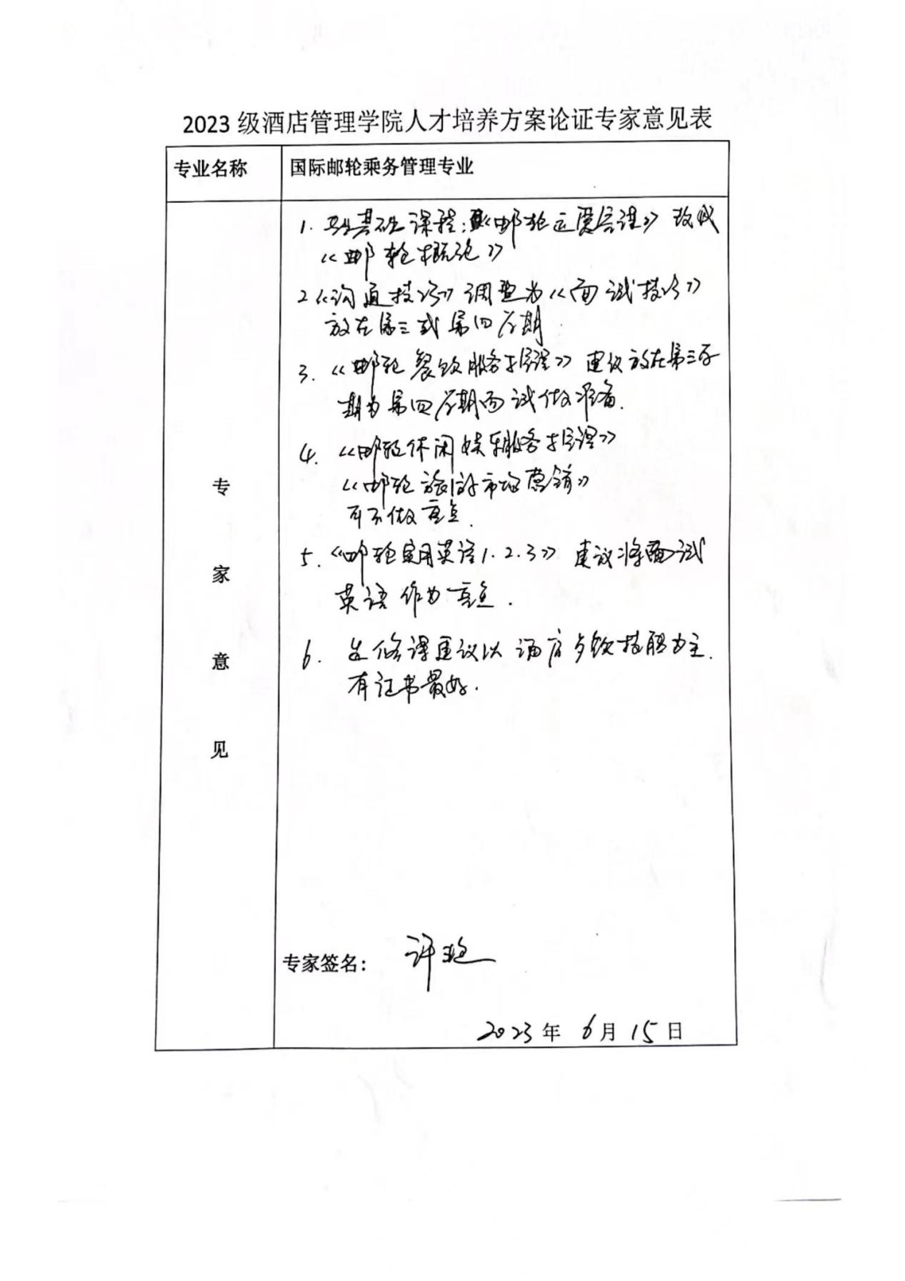 7.具有邮轮酒店组织架构设计、邮轮市场营销策划、邮轮员工培训计划编制与执行、酒店员工绩效评价等邮轮运营与管理能力。
