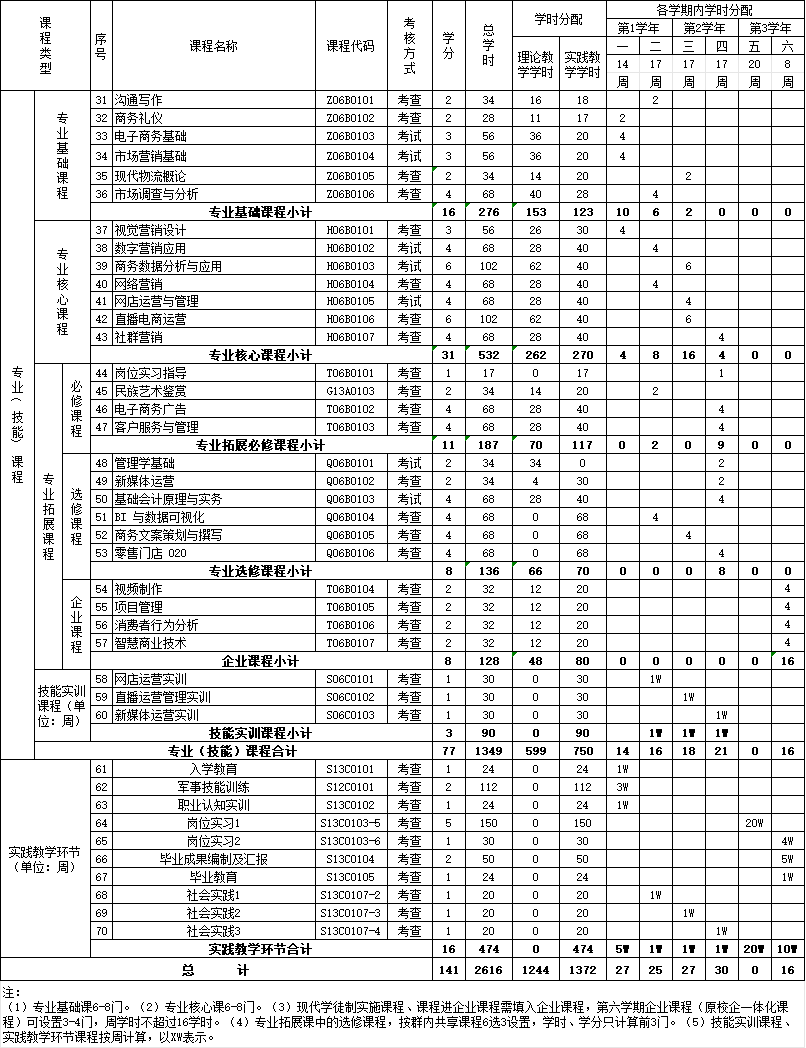 本专业培养能够践行社会主义核心价值观,传承技能文明,德智体美劳全面发展,具有一定的科学文化水平,良好的人文素养、科学素养、数字素养、职业道德、创新意识,爱岗敬业的职业精神和精益求精的工匠精神,较强的就业创业能力和可持续发展的能力,掌握本 专业知识和技术技能,具备职业综合素质和行动能力,面向互联网和相关服务、批发业、零售业的运营主管、全渠道营销主管、O2O 销售主管、智能客服主管、视觉营销设计师、互联网产品开发主管等岗位(群),能够从事数据化运营、网店运营、社群运营、行业运营、营销活动策划与执行、销售方案执行与优化、客户服务管理、视觉设计、互联网及电商产品开发工作的高技能人才。