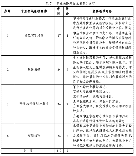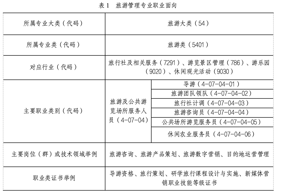 本专业培养能够践行社会主义核心价值观,德智体美劳全面发展,具有一定的科学文化基础及文旅融合、“旅游+”等行业前沿认知基础,良好的人文素养、科学素养、数字素养、职业道德和创新意识,精益求精的工匠精神,掌握接待服务、项目策划、产品设计、数字营销及相关法律法规等知识,具备服务质量管理、客户关系管理、部门运营管理等基础能力,面向旅游业、“旅游+”新业态的导游、计调、营销、咨询、服务等岗位群,能够从事旅游咨询、旅游产品策划、旅游数字营销、目的地运营管理等工作的高素质技术技能人才。