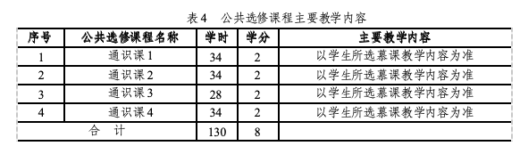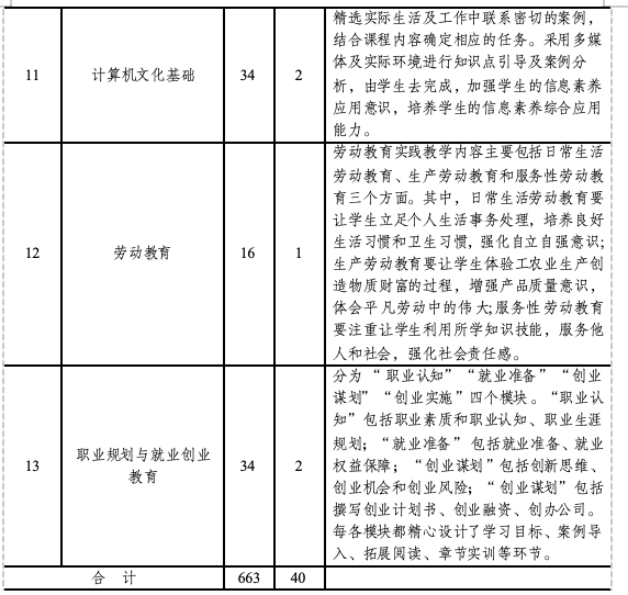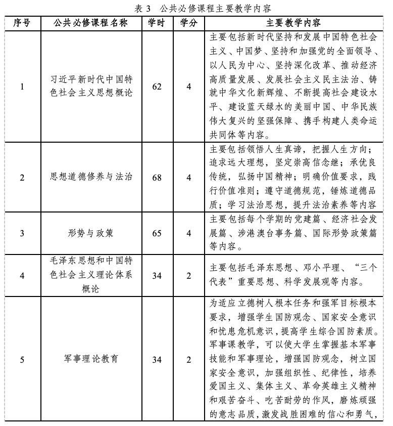 按照国家有关规定开齐开足公共基础课程,将思想政治理论、体育、军事理论与军训、心理健康教育、劳动教育课程列为公共基础必修课程。将党史、新中国史、改革开放史、社会主义发展史、中华优秀传统文化、大学语文、高等数学、公共外语、应用文写作、国家安全教育、信息技术、艺术、职业发展与就业指导、创新创业教育、美育等列为必修课程或选修课程,并根据实际情况可开设具有地方特色的校本课程。