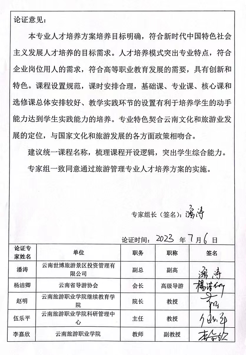 本方案由旅游管理专业教师共同研讨,经过多次讨论和企业征询讨论,于2023年7月修订完成。并经专业指导委员会论证。