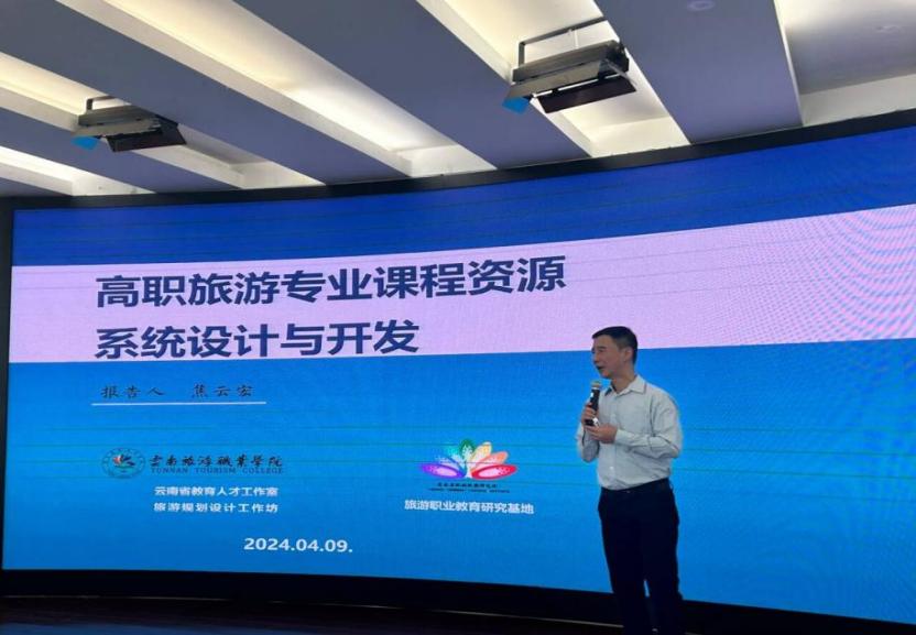 最后,焦云宏老师代表工作室向师生作主题为“高职旅游专业课程资源系统设计与开发”的专题报告。